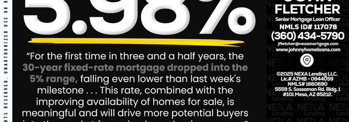 5.98% - John Fletcher -Senior Mortgage Loan OfficerHi, my name is John Fletcher. I’m a Loan Officer with NEXA Lending LLC., offering personalized mortgage solutions, fast customized quotes, great rates and service with integrity.