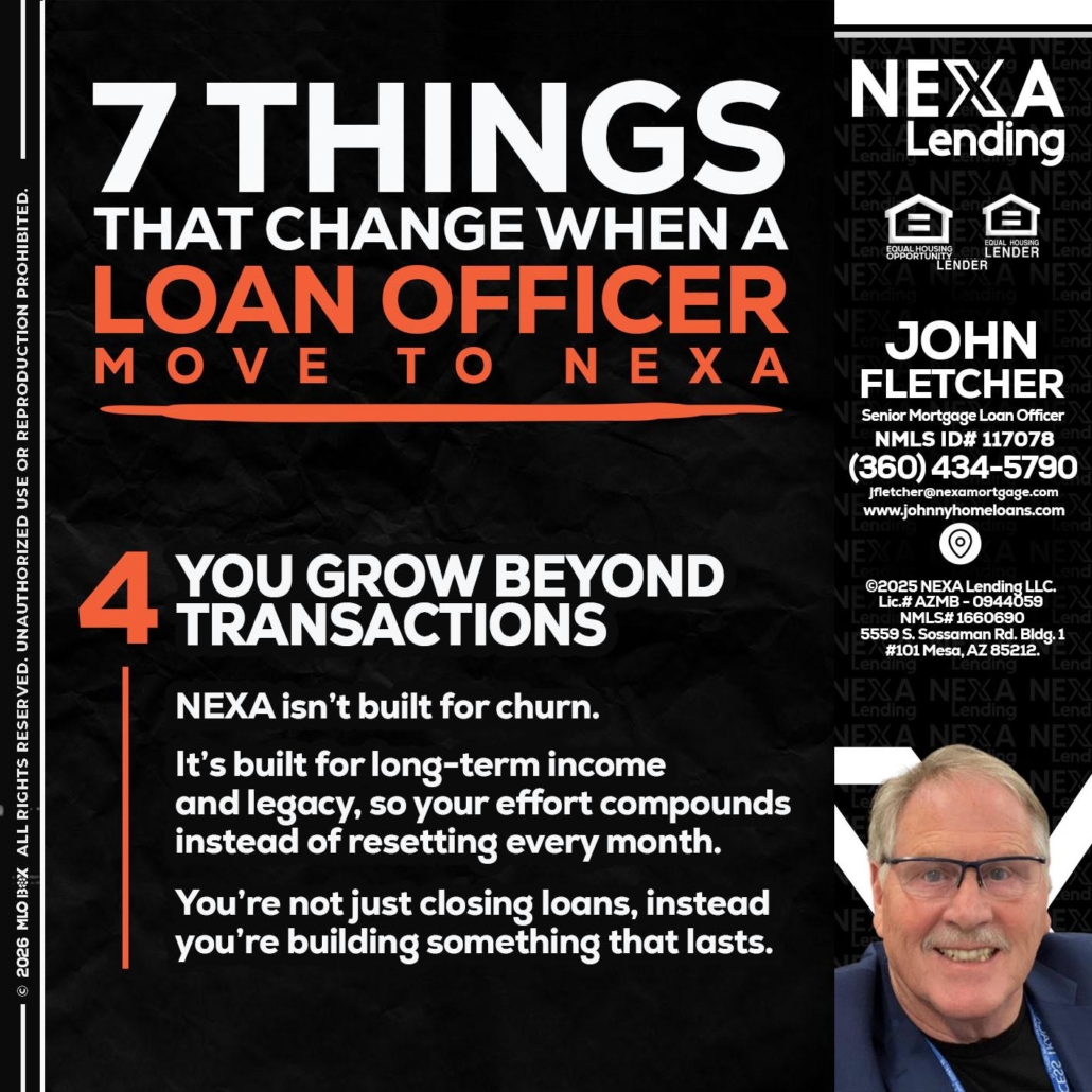 7 THINGS (4) - John Fletcher -Senior Mortgage Loan OfficerHi, my name is John Fletcher. I’m a Loan Officer with NEXA Lending LLC., offering personalized mortgage solutions, fast customized quotes, great rates and service with integrity.