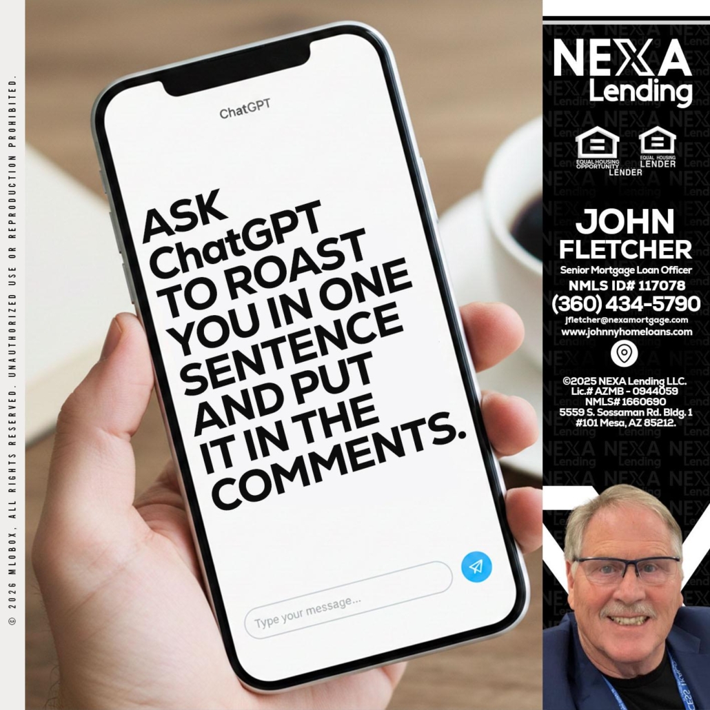 ask chatgpt - John Fletcher -Senior Mortgage Loan OfficerHi, my name is John Fletcher. I’m a Loan Officer with NEXA Lending LLC., offering personalized mortgage solutions, fast customized quotes, great rates and service with integrity.