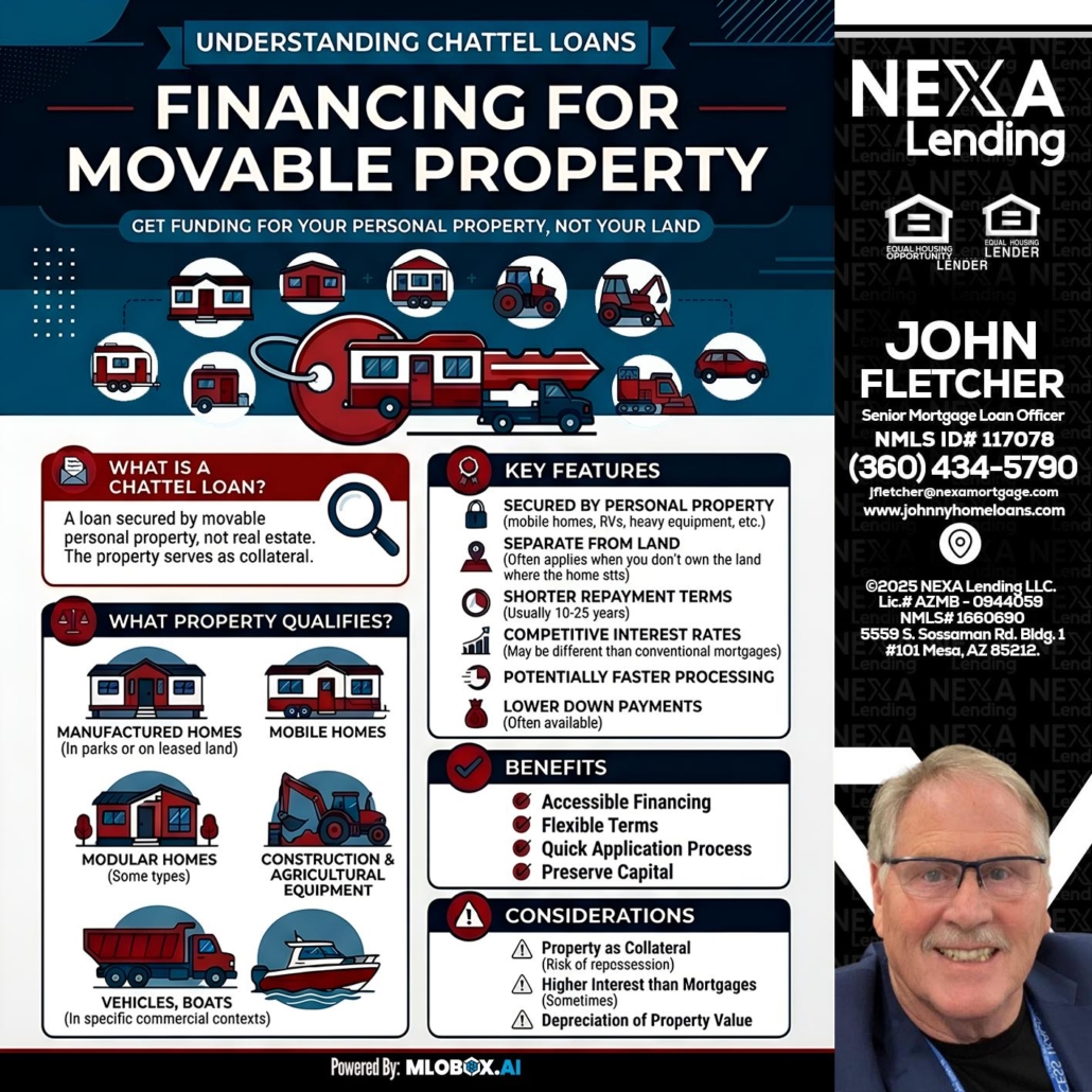 Hi, my name is John Fletcher. I’m a Loan Officer offering personalized mortgage solutions, fast customized quotes, great rates and service with integrity. If you’re interested in learning more about the Chattel loan or any other, just let me know and I’ll walk you through your options.