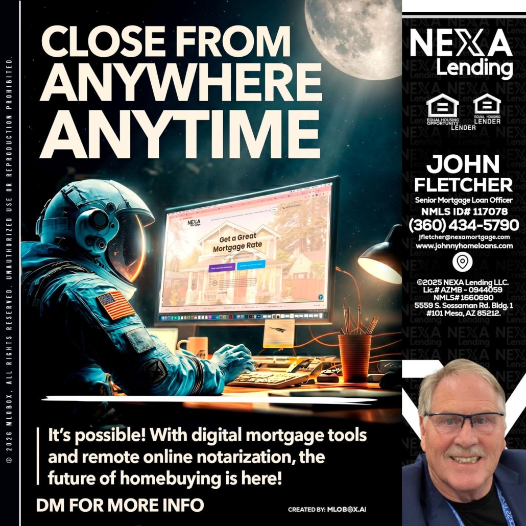 CLOSE FROM - John Fletcher -Senior Mortgage Loan OfficerHi, my name is John Fletcher. I’m a Loan Officer with NEXA Lending LLC., offering personalized mortgage solutions, fast customized quotes, great rates and service with integrity.