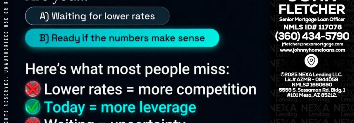 Hi, my name is John Fletcher. I’m a Loan Officer with NEXA Lending LLC., offering personalized mortgage solutions, fast customized quotes, great rates and service with integrity.