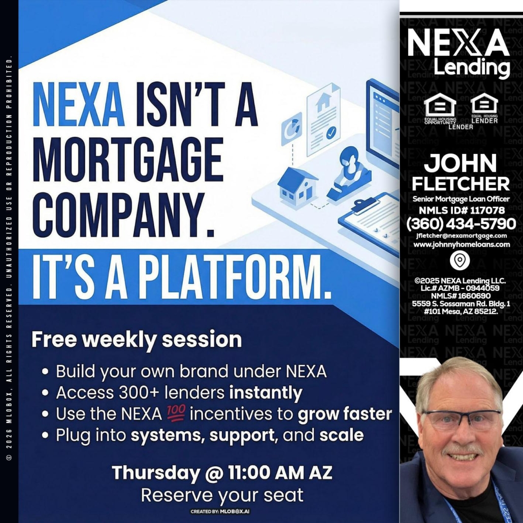 Hi, my name is John Fletcher. I’m a Loan Officer with NEXA Lending LLC., offering personalized mortgage solutions, fast customized quotes, great rates and service with integrity.
