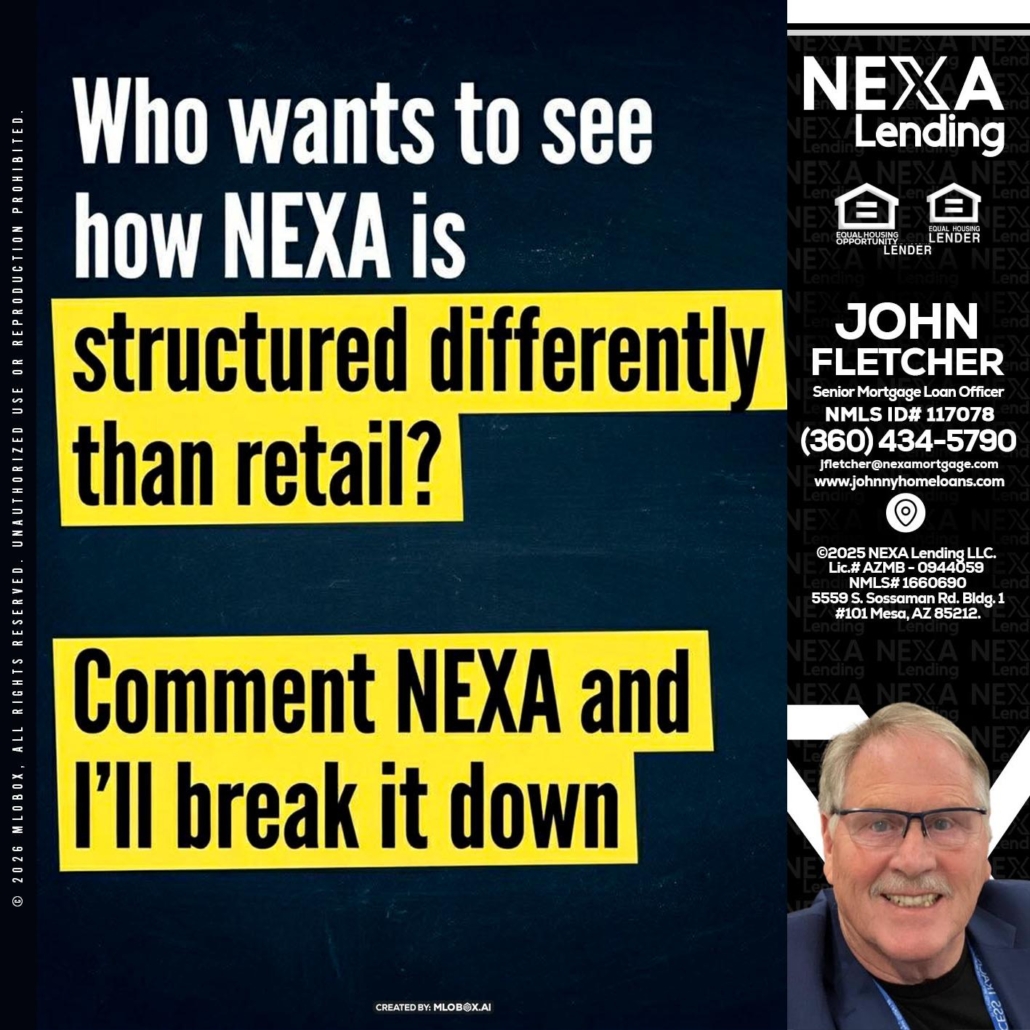 Hi, my name is John Fletcher. I’m a Loan Officer with NEXA Lending LLC., offering personalized mortgage solutions, fast customized quotes, great rates and service with integrity.