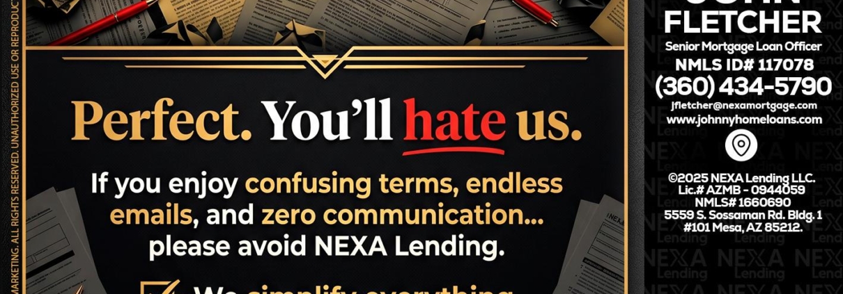 Hi, my name is John Fletcher. I’m a Loan Officer with NEXA Lending LLC., offering personalized mortgage solutions, fast customized quotes, great rates and service with integrity.